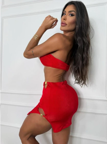 Este conjunto é uma fusão perfeita de sofisticação e estilo, projetado para impressionar em qualquer ocasião. O modelo apresenta uma saia midi verde, destacando uma fenda lateral que adiciona movimento e sofisticação a cada passo. Complementando-a, o top tomara que caia em malha lisa abraça suavemente as curvas femininas, proporcionando conforto e elegância em igual medida.