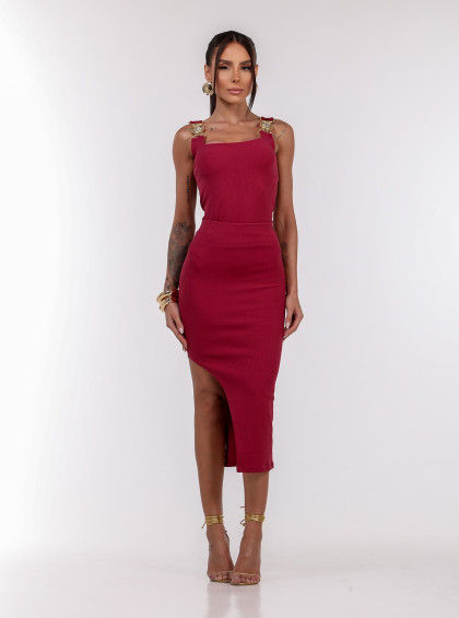 O caimento ajustado ao corpo destaca as curvas de forma refinada, enquanto o comprimento midi equilibra sensualidade e elegância. Versátil, é a escolha ideal para produções que vão do office look ao visual noturno, especialmente quando combinada com peças de destaque ou acessórios marcantes.