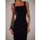 O vestido midi preto de alças largas é uma peça atemporal que traduz elegância e sofisticação. Com modelagem ajustada ao corpo, valoriza a silhueta de forma feminina e elegante, proporcionando um caimento impecável. O decote reto traz um visual moderno e minimalista, perfeito para produções versáteis.